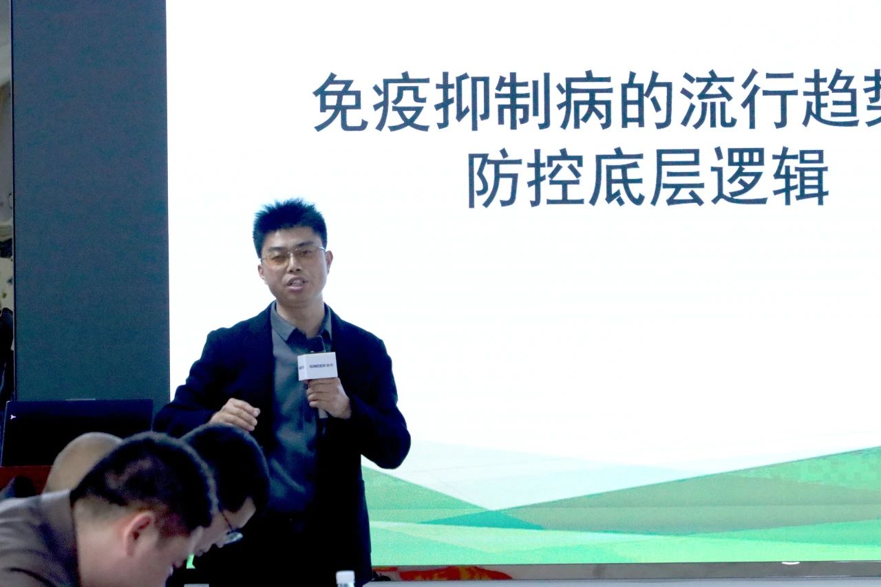 山東亞太中慧集團(tuán)總獸醫(yī)師趙國(guó)博士以《免疫抑制病的流行趨勢(shì)與防控底層邏輯》為主題作報(bào)告。趙博士憑借自身多年深耕養(yǎng)殖業(yè)的研究成果,深入淺出地闡述了養(yǎng)殖業(yè)生產(chǎn)力提高的底層邏輯和當(dāng)前疾病控制努力的六點(diǎn)方向包括及時(shí)淘汰弱小雞等,為行業(yè)同仁在健康養(yǎng)殖、提升養(yǎng)殖效益方面提供了可行性的方向指引。