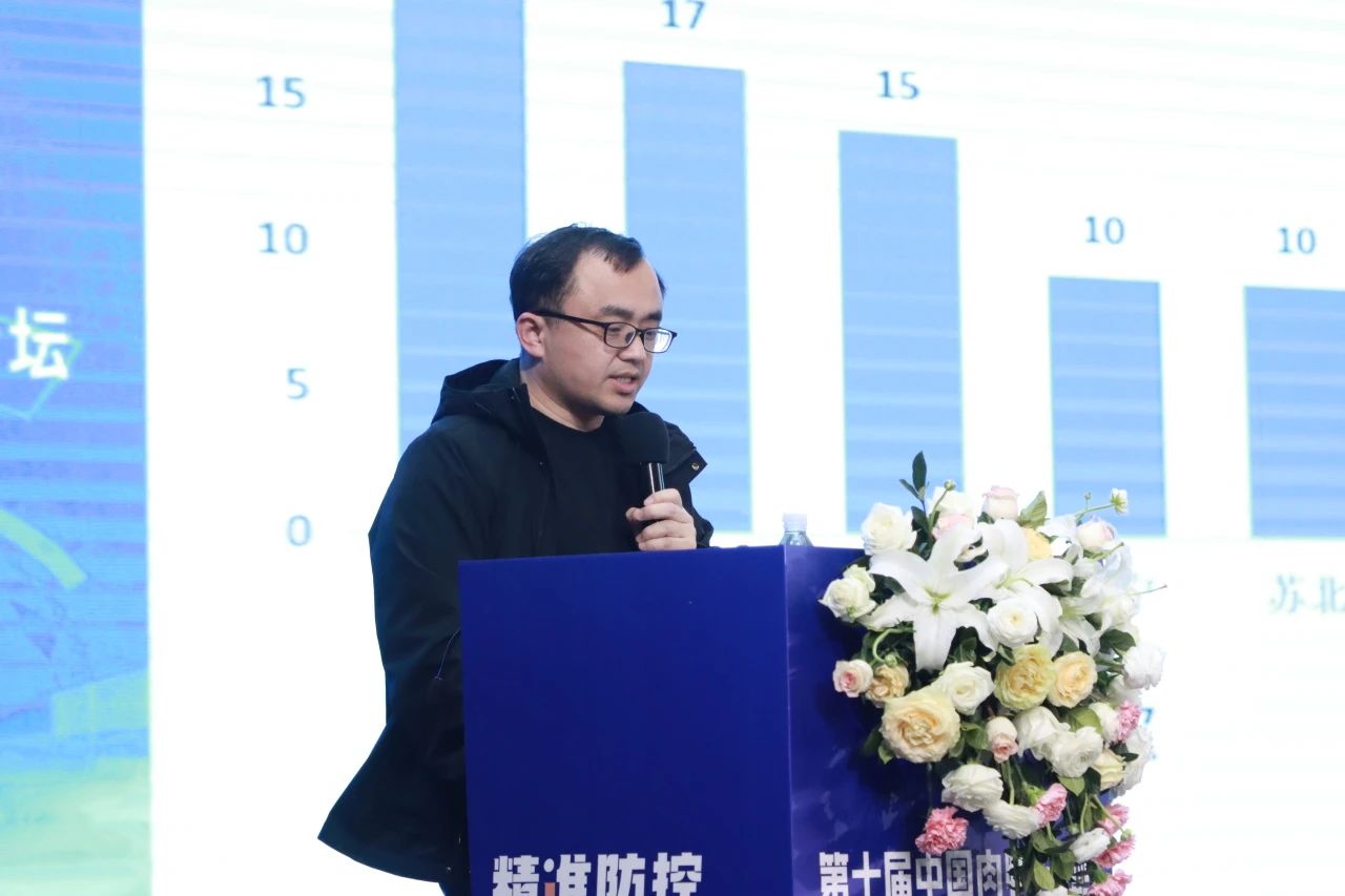 中新食品禽BU技術總監吳海洋先生結合中新食品肉鴨養殖的實際情況,以《肉鴨規模場疫病防控管理實踐分享》為題作報告。吳總監指出養殖成功=飼養管理(70%)+疾病防控(30%)。針對7日齡免疫應激較大、人工成本高、免疫空白期長等問題,中新食品將免疫時間調整為一日齡,這一改變顯著降低了鴨群的應激反應,節省了養殖成本,避免了漏免和交叉感染,降低了鴨脖殘次品率,提升了產品品質。針對流感和RA等重點疾病的防控,他強調,要做好疫病監測,并與動保供應商緊密合作,做好疫苗毒株精準匹配等工作,保障疫苗的臨床保護效果和防控精準度。