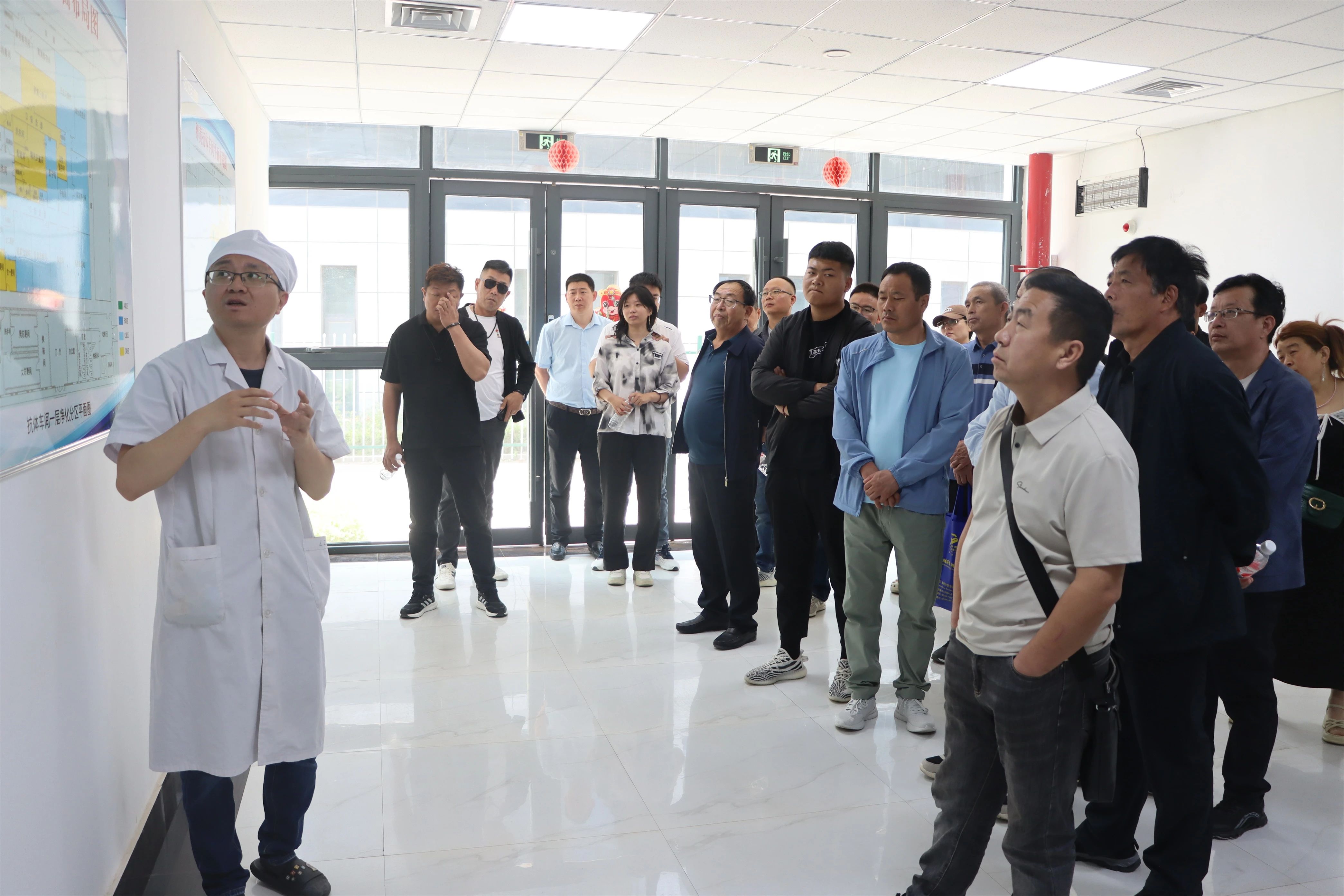 來訪嘉賓分批走進諸城工業園、高級別生物制品智能制造園區和信得動物疫苗有限公司參觀,車間主任李金江、趙艷海和呂日紅等生產負責人分別就“轉移因子車間”、“卵黃抗體車間”和“高致病性禽流感滅活疫苗車間”的自動化生產流程、智能化生產設備和核心工藝特點作詳細介紹。信得無菌化、管道化、規范化生產過程給諸位嘉賓留下深刻印象,對信得的精益生產有了直觀感受。