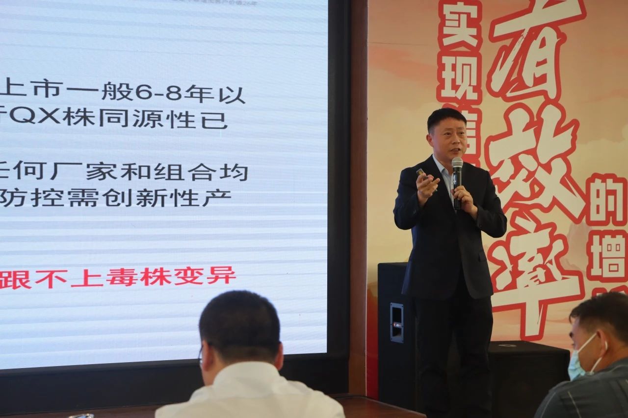 會上,孟令旭經理,針對蛋雞禽流感的防控,從“高致病性禽流感流調及監測數據”、“信得禽流感解決方案及使用案例”以及“疫苗在現場使用的注意事項”進行講解。孟經理指出,當前禽流感處于流行期,河北、江蘇 、河南、山東區域成為重點流行區域,疫苗免疫是控制禽流感的有效方法,在疫情高發區域采用信得抗體預防和疫苗免疫的方案取得良好的防控效果。另外在現場使用過程中強調檢測抗原對型與規范免疫操作。建議養殖場根據區域風險制定免疫程序,強化生物安全,重視抗體監測與免疫空白期保健。通過大量臨床試驗表明,信得科技采用細胞懸浮生產工藝生產的禽流感疫苗,免疫應激小,吸收好,保護率高,在養殖企業中得到了廣泛應用。公司具備從流調檢測、毒株改造、生產供應、技術服務、健康跟蹤的全流程能力。
