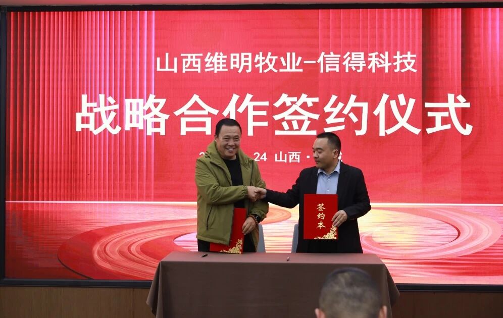 基于長期合作建立的信任與對信得產品方案及服務的肯定,本次會議現場,山西維明牧業股份有限公司、運城三優養殖有限公司、稷山張嘎養殖合作社、山西艾格盛養殖有限公司分別與信得科技簽署戰略合作協議。隨著信得產品方案與技術服務的持續落地,將為合作企業構建起精準、高效的疫病防控與健康管理體系,實現“降本增效、健康養殖”的共贏目標。