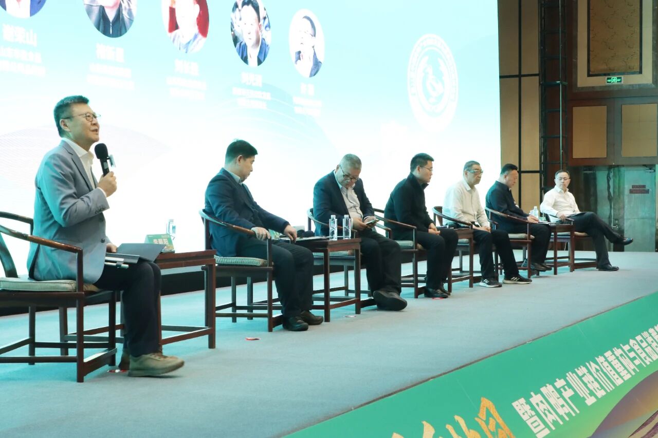 在“水禽產業高質量發展論壇”環節,信得科技董事長李朝陽與益客集團副總裁王維、山東豐盈食品總經理謝榮山、和康源集團執行總裁褚新星、山東昌盛禽業董事長劉長勝、新泰市天信農牧董事長劉光洲、禽高創總經理許毅,圍繞“肉鴨行業產能調控”、“種商協同機制”、“消費場景拓展”等議題展開深入研討。與會嘉賓結合各自企業實踐與行業洞察,剖析了當前肉鴨產業面臨的難題,并提出應對思路。大家一致認為,肉鴨行業同仁應深化協同,理性調控產能,積極拓展終端消費場景,并通過推動種商一體化,為商品代養殖筑牢健康防線。
